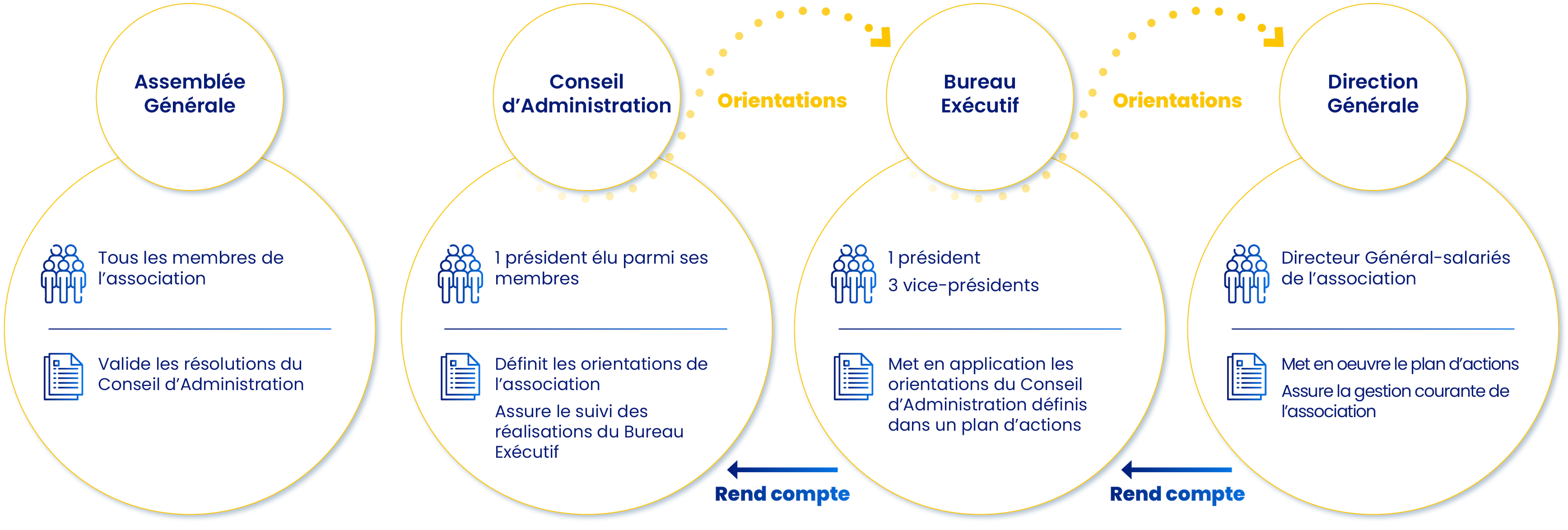Les Administrateurs de l'Association sont désignés par l'Assemblée Générale. Elle se réunit chaque année pour statuer sur les comptes de l'exercice social écoulé, affecter les excédents éventuels, désigner ou renouveler les Administrateurs et valider les résolutions du Conseil d'Administration.